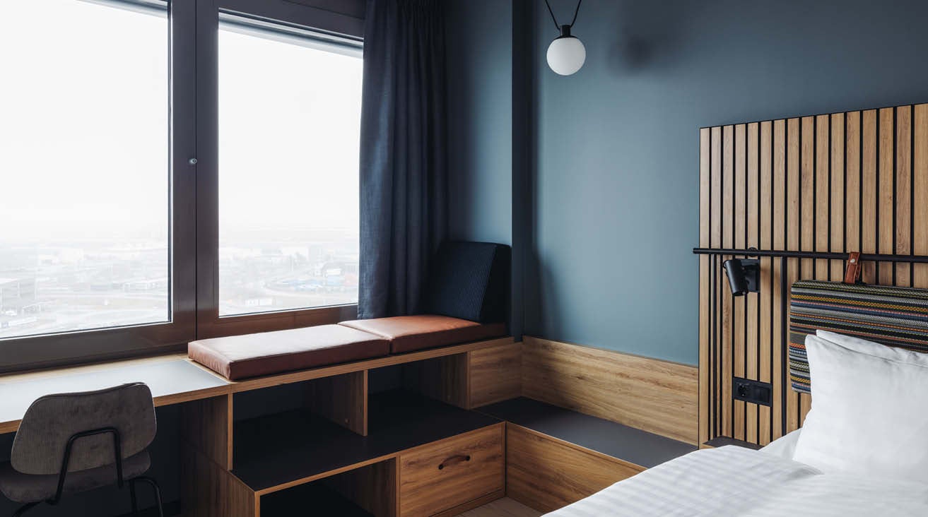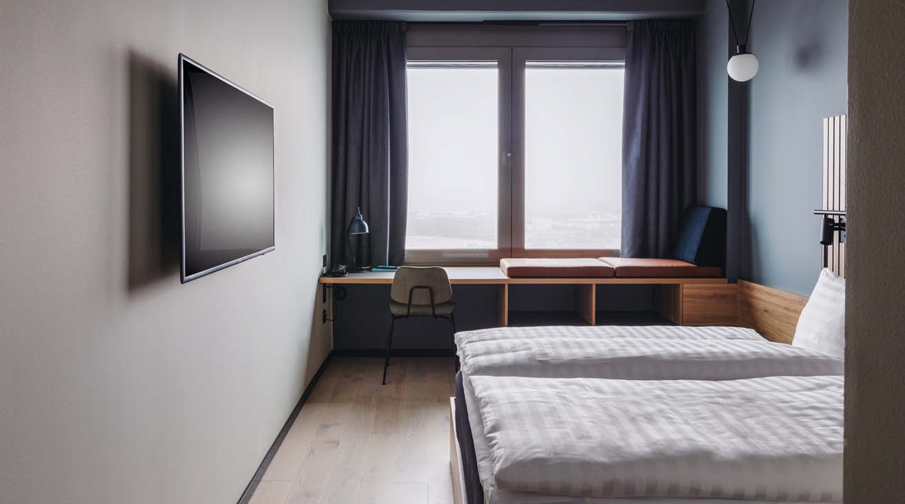 - Uppgradering till ett Superior rum på 12:e våning med fantastisk utsikt över flyplatsen och en extra våningssäng: 300.- (extra person på rummet: 200.- per person)